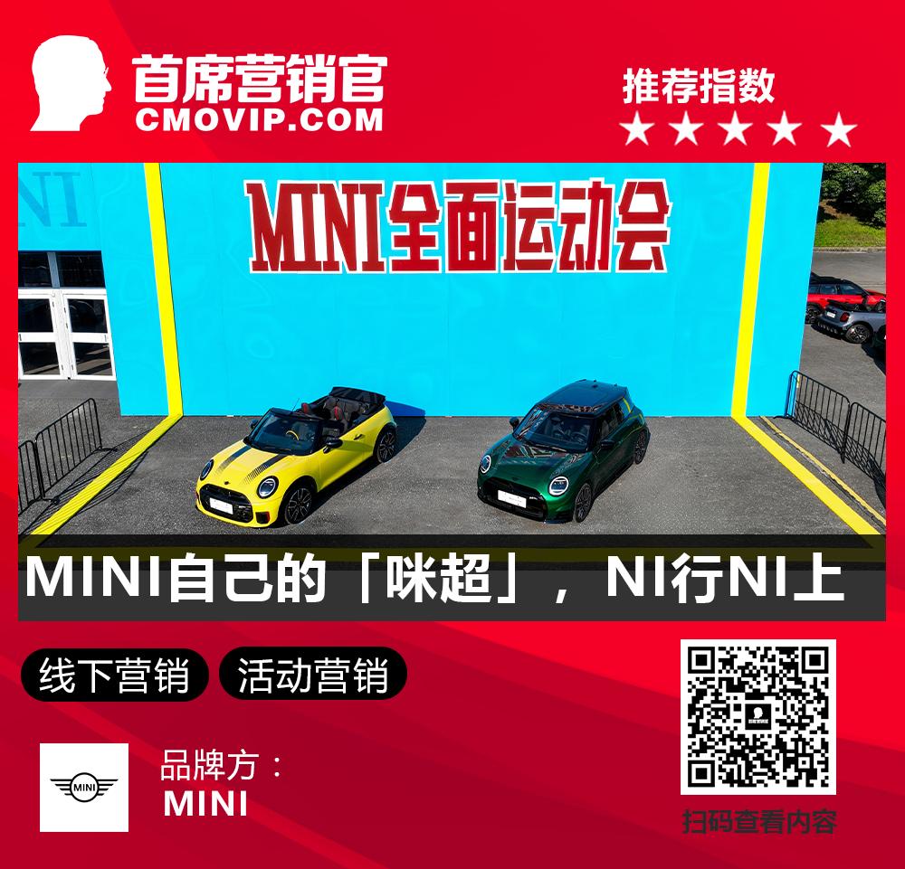 点评:MINI既让用户在沉浸式体验中深度感知 MINI 的产品力,用年轻化语言消解赛事严肃感,传递出了玩真格,不装腔的品牌态度。