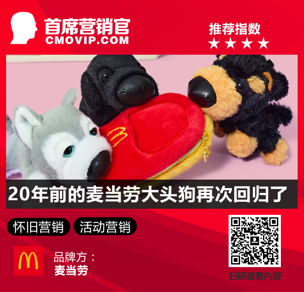 近日,麦当劳官宣重启大头狗联名IP。这个 90 后、00 后童年记忆里的标志性玩具,2004 年首次亮相的大头狗后就一度成为儿童套餐的顶流玩具。