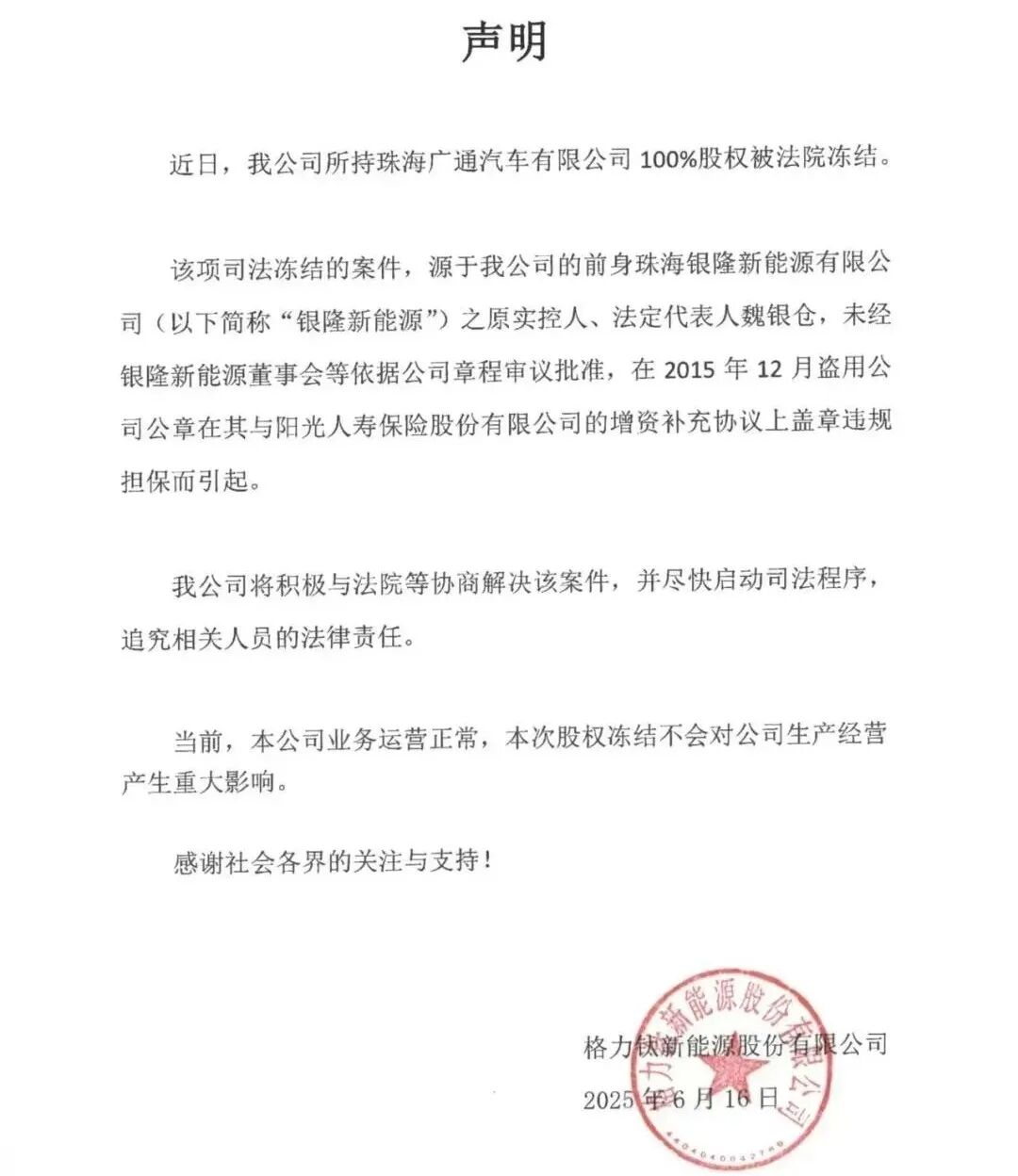 2023年起,她陆续辞去了格力钛新能源、格力智能制造等公司的法人职务。