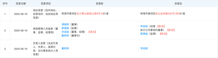 今年6月10日,天眼查显示,董明珠不再担任珠海零边界集成电路有限公司法定代表人及董事长,接任者是格力电器副总裁李绍斌。