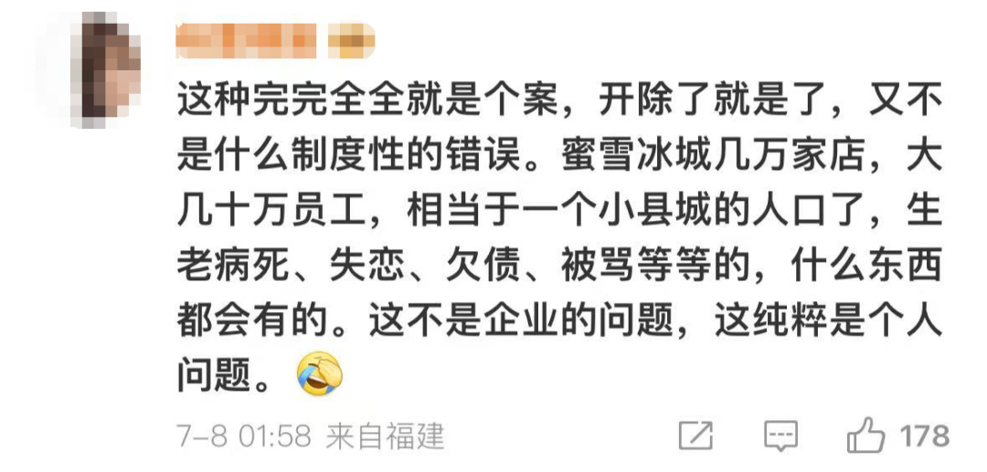 认为前员工的个人行为与雪王无瓜,这波说不定是被人做局了。