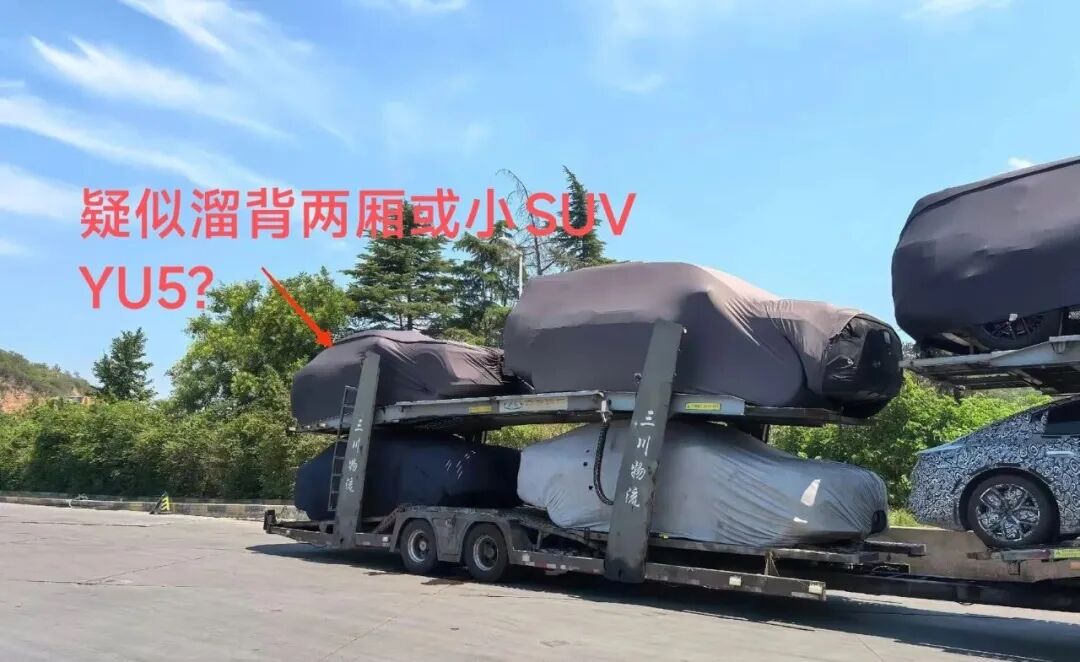更有意思的是,板车尾部还停着一台比YU7小一号的车,车灯撑起的折痕连贯流畅,和YU7完全不同,疑似为两厢车或溜背SUV。
