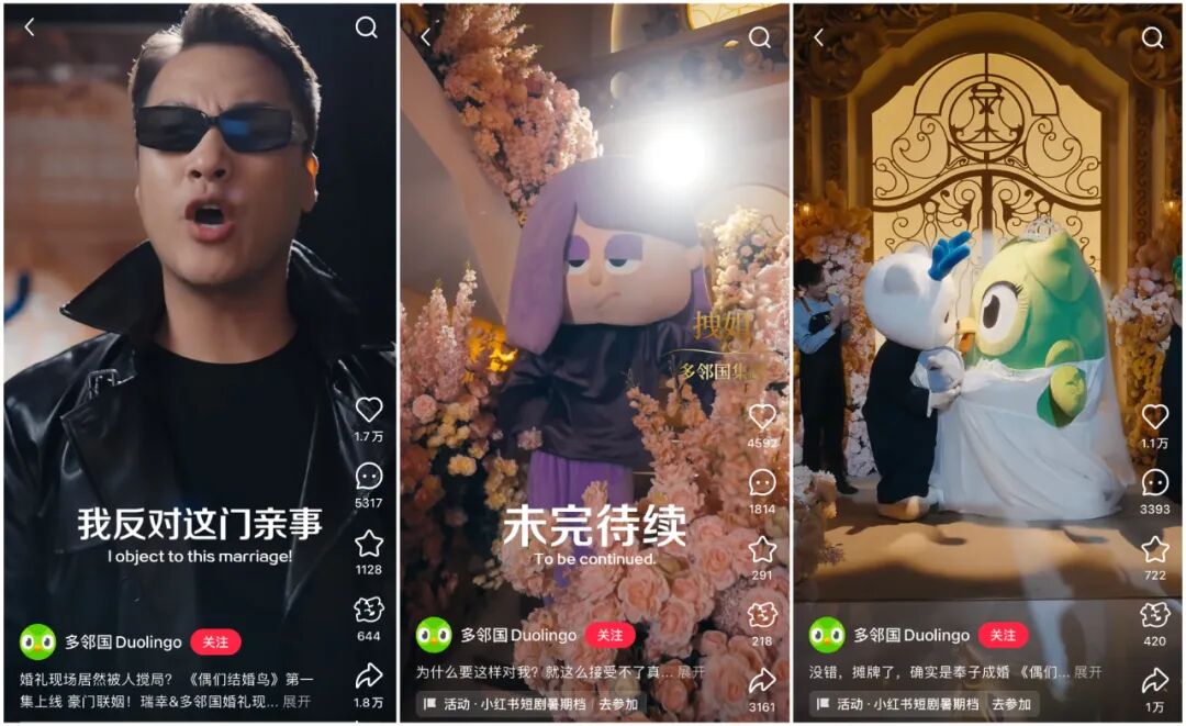 不过,这些撒狗血的场面和瑞幸x 多邻国的婚礼现场比起来,那还是小巫见大巫。