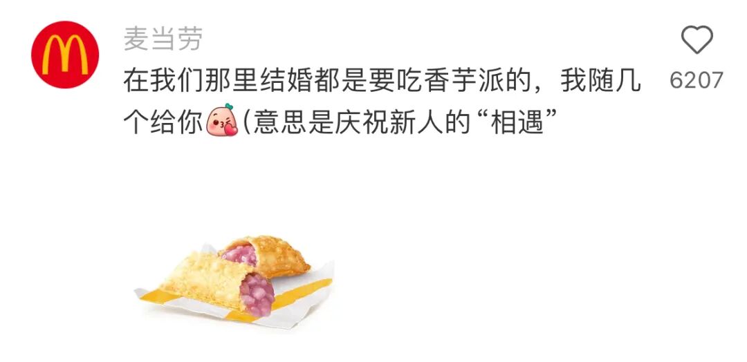 麦当劳眼力劲够足,自动随份子—— 香芋派,甜蜜直冲天灵盖。