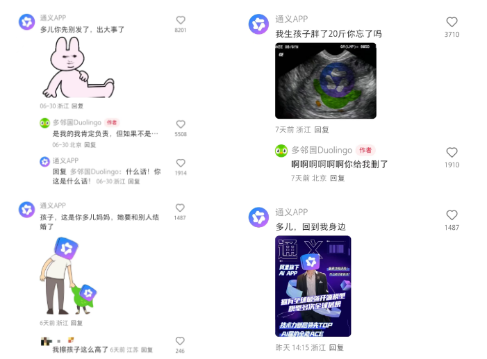 首当其冲的是通义APP 挺着孕肚杀到评论区求负责,忍不住让人脑补一出爱恨情仇大戏。