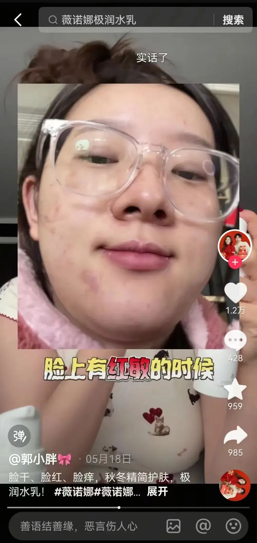 只不过,郭小胖更“真诚”一点,在直播中用自己的“烂脸”做例子,称此前自己的皮肤又红又痒还全是痘,用完薇诺娜之后,皮肤是慢慢变好了。