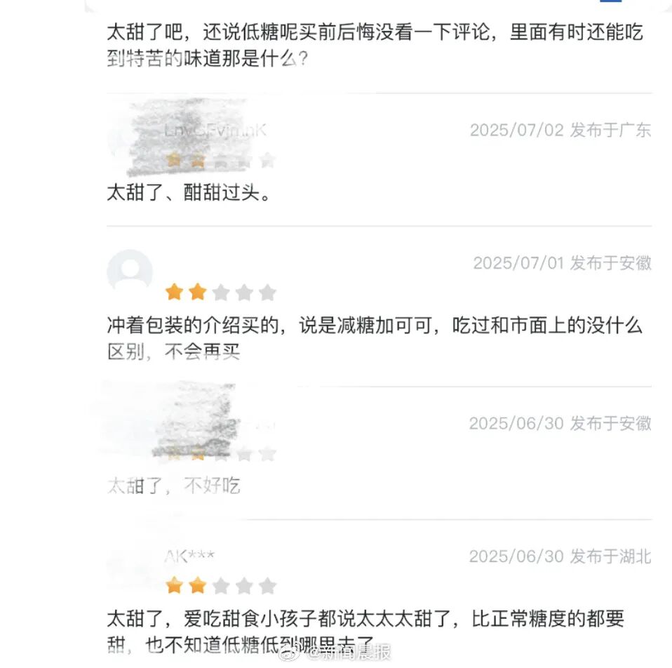 结果300多人打出差评,有消费者怒喷:“看到低糖才买的,结果甜到齁!”