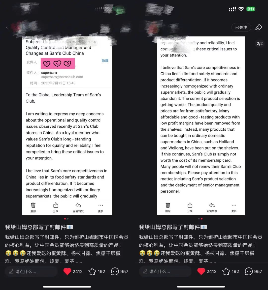 最近刷小红书,山姆的吐槽帖快成了流量密码。