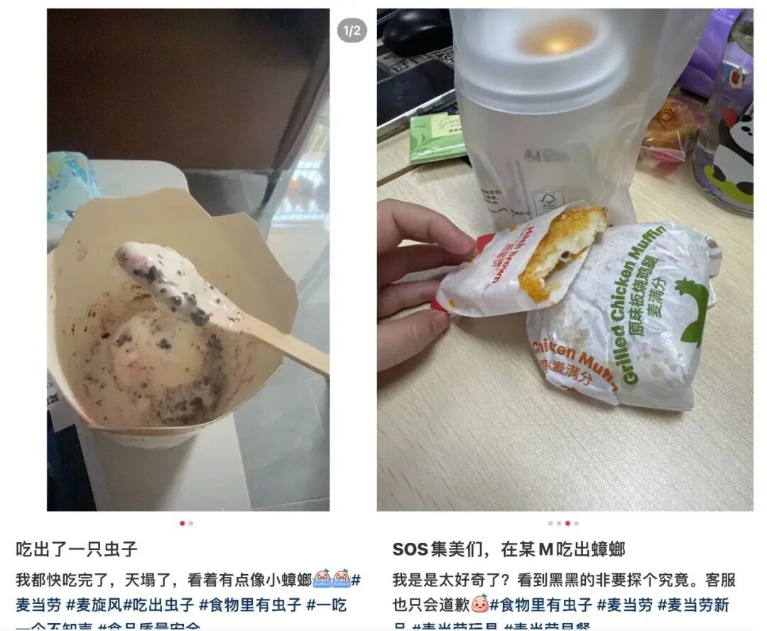 有人在麦旋风中吃出像蟑螂的小虫子、有人的麦当劳纸巾上惊现蟑螂腿、有人在脆薯饼中吃出疑似蟑螂的虫子……对比之下,仅看到蟑螂在地上爬的“麦门”,已经很幸运了。