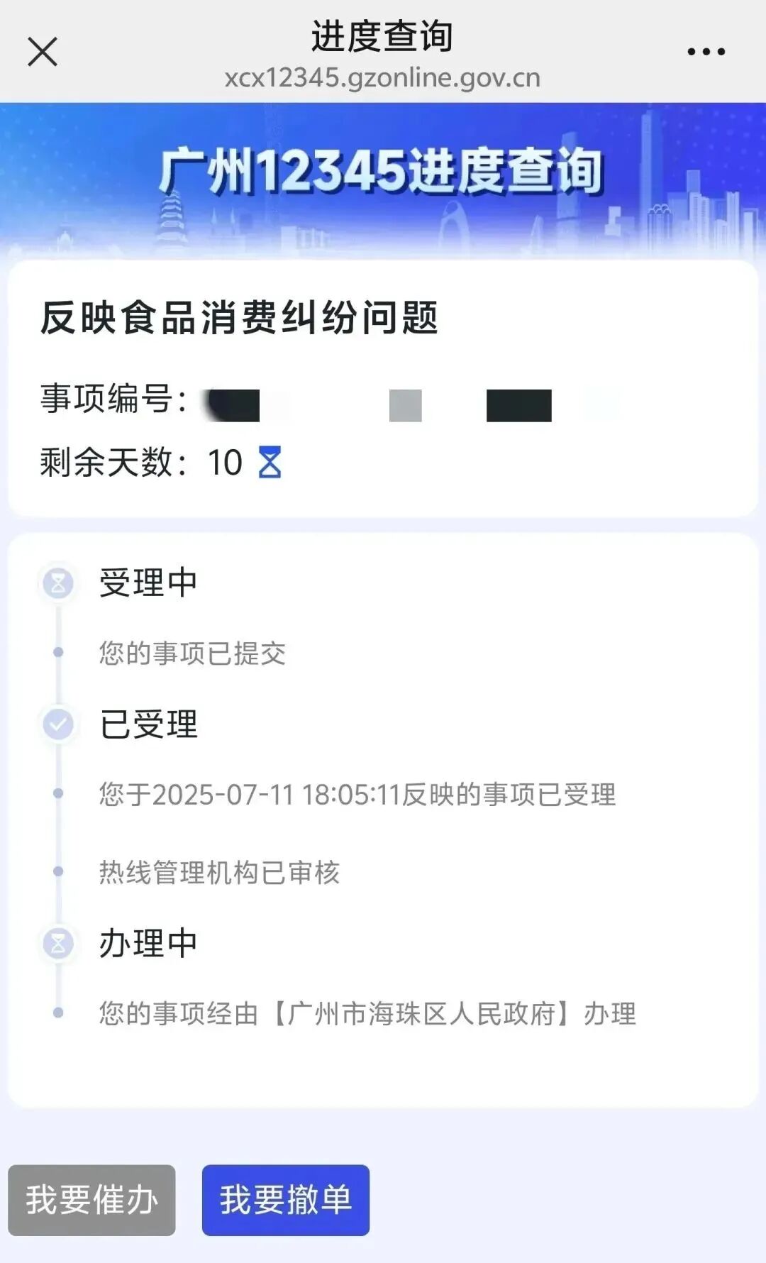 不过,方女士还是在当天拨打了广州12345便民热线进行投诉,维护自己的合法权益。