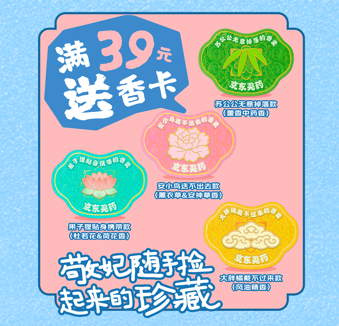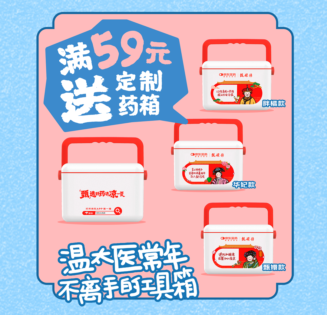 京东买药携手甄嬛传为你量身定制解暑“凉”方,7月21日-7月25日期间,上京东APP搜索“甄选好药”,购买活动指定药品,送联名周边,有防蚊贴、香卡、药箱、冰垫等周边。