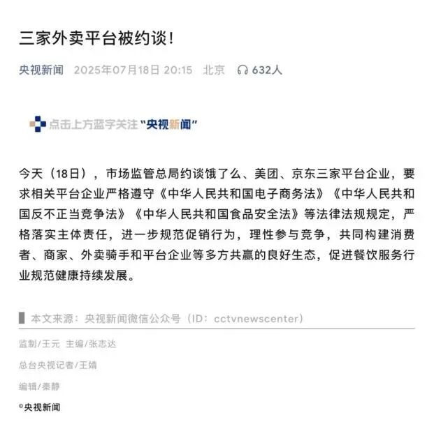 而在7月18日,美团、饿了么、京东三家平台再次被市场监管总局约谈。