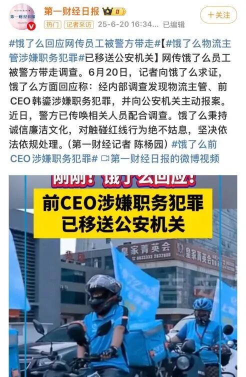 还记得在一个月前,电商天下才在《饿了么突然爆雷,阿里有大事发生!》中报道了饿了么前CEO、即时物流主管韩鎏被警方传唤调查的消息。