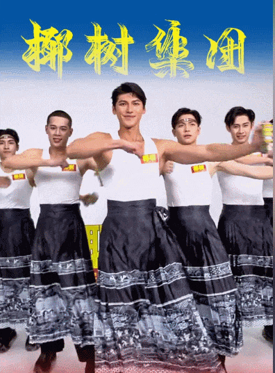 帅哥们身着民族特色服饰,手举椰树椰汁,踩着当下火爆的“大展鸿图” 舞曲节奏舞动;