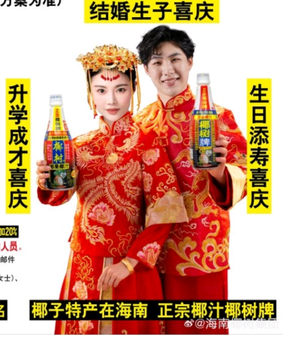 去年,代言人大嫂徐冬冬步入婚姻,椰树借势主打“婚庆风”。