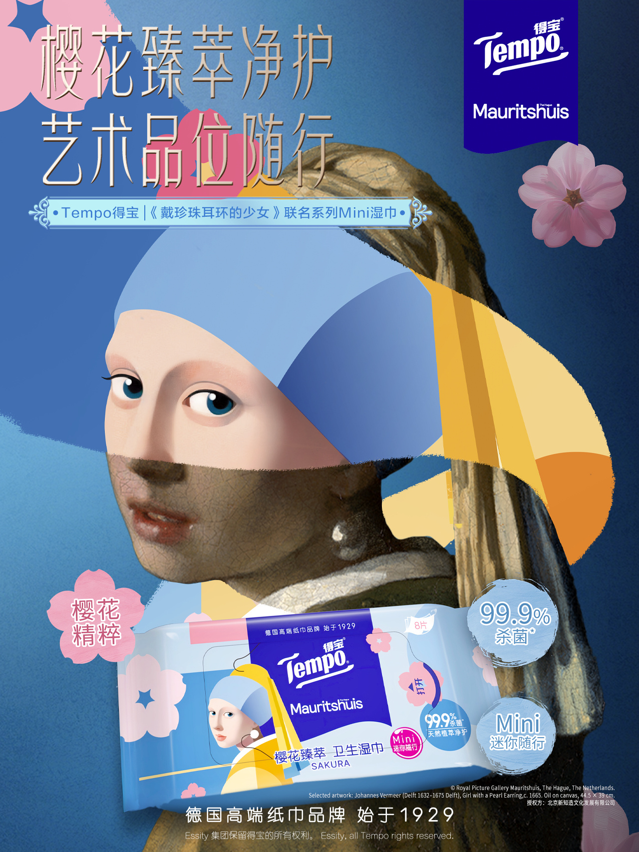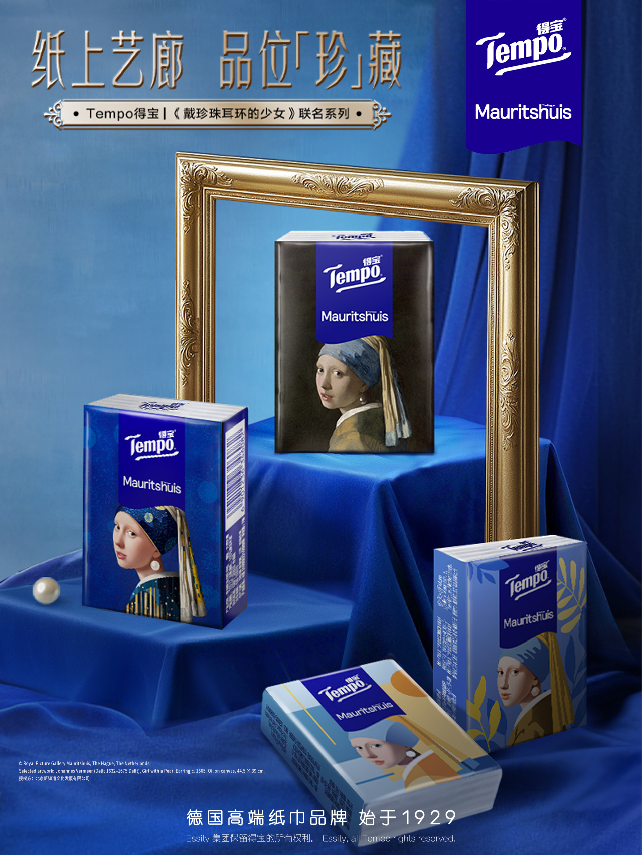 Tempo得宝x莫瑞泰斯皇家美术馆联名系列重磅上新,以当代灵感,焕新传世名作。得宝独家臻献——《戴珍珠耳环的少女》艺术联名系列纸巾。