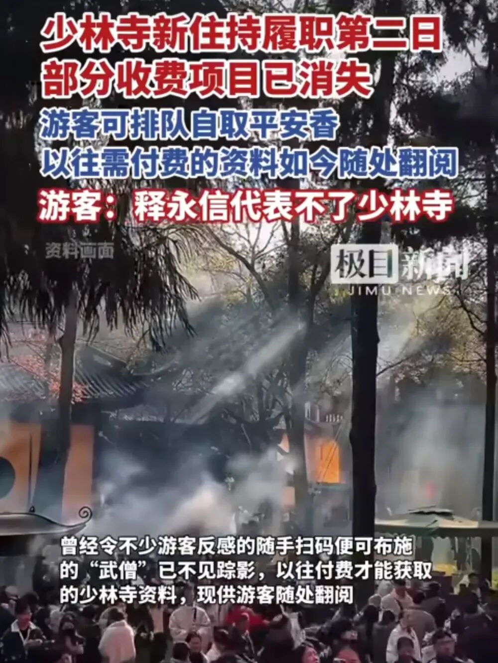 据报道,释永信的纪念碑已被遮挡,少林寺此前饱受诟病的“平安香”“全家福香”等收费项目也已不见踪影。