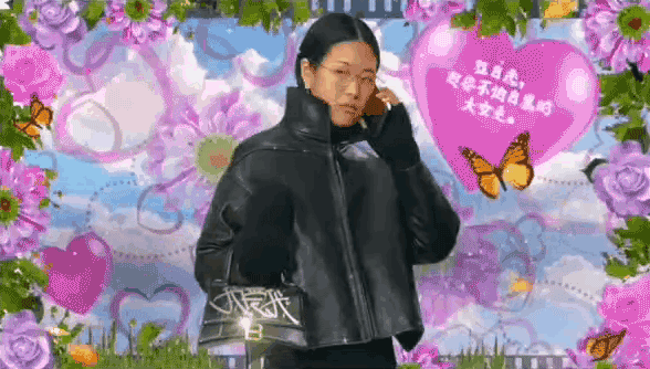 不止如此,巴黎世家还特意制作了土味 GIF 动图,飞来飞去的蝴蝶、粉色的红心、四处发光的细闪......土的非常山寨。