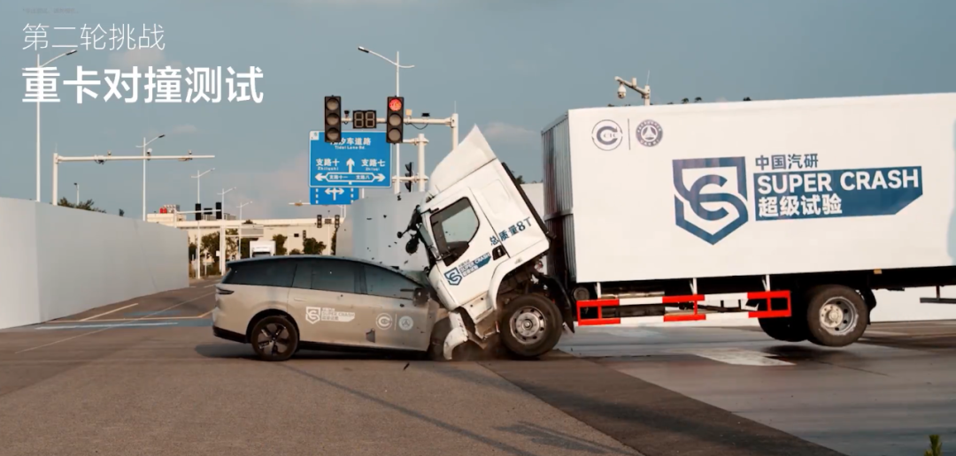 理想表示该测试为自主设计的测试项目,目标是模拟真实道路“乘用车对重卡”的极端场景,并非标准碰撞测试,也无意拉踩任何品牌。