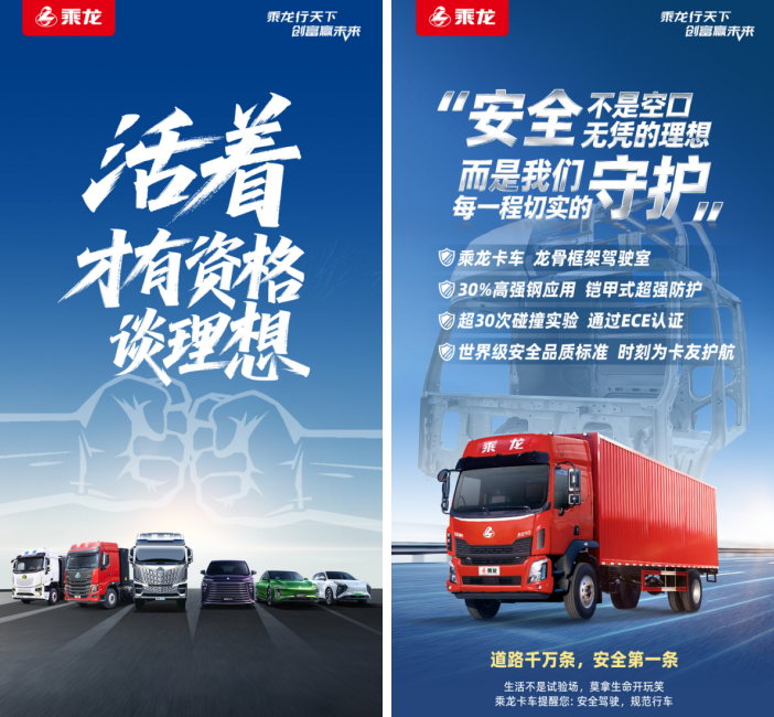 第一天发表声明称:理想"未经授权使用视频,贬低品牌形象,构成严重侵权";第二天发布《致乘龙卡友的一封信》,表示测试场景与实际交通情况存在极大差异,并配文“安全不是空口无凭的理想,而是我们每一程切实的守护”。