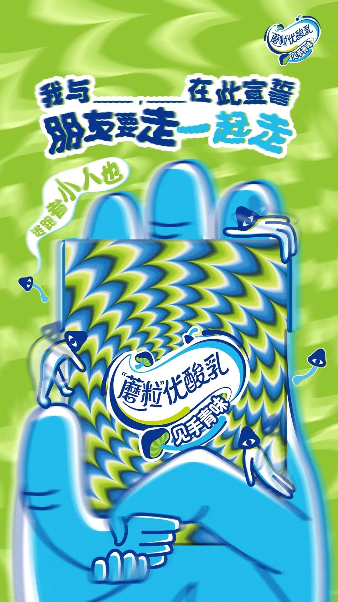 当大家看到优酸乳推出的“见手青”新口味,以及那迷幻的包装风格,就知道为何邪门了。