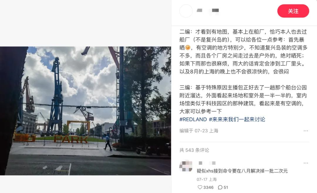 在社媒平台上,不少用户对活动选址提出质疑:位于杨浦区的复兴岛虽然拥有古树林立、工业遗存与现代船台交织的独特地貌,但作为上海黄浦江畔唯一的内陆岛,交通不便成为首要难题。