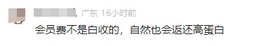 有人揶揄,“会员费不是白收的,自然也会返还高蛋白”“不知好歹,加量不加价,良心商家”。