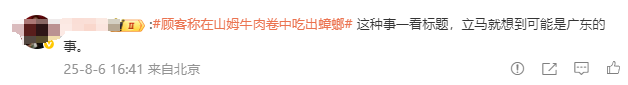 近日,就有一位网友在社交媒体上吐槽,自己在广州番禺山姆餐吧吃饭的时候,竟然在爆款芝士牛肉卷里发现了蟑螂。