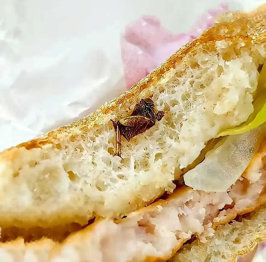 而在前不久,广州市民方女士在麦当劳百利华庭店下单了一份套餐外带,在吃汉堡时,竟然发现面包胚内嵌有半只呈干尸状态的蟑螂,另外半只在喉咙里抠出来了。