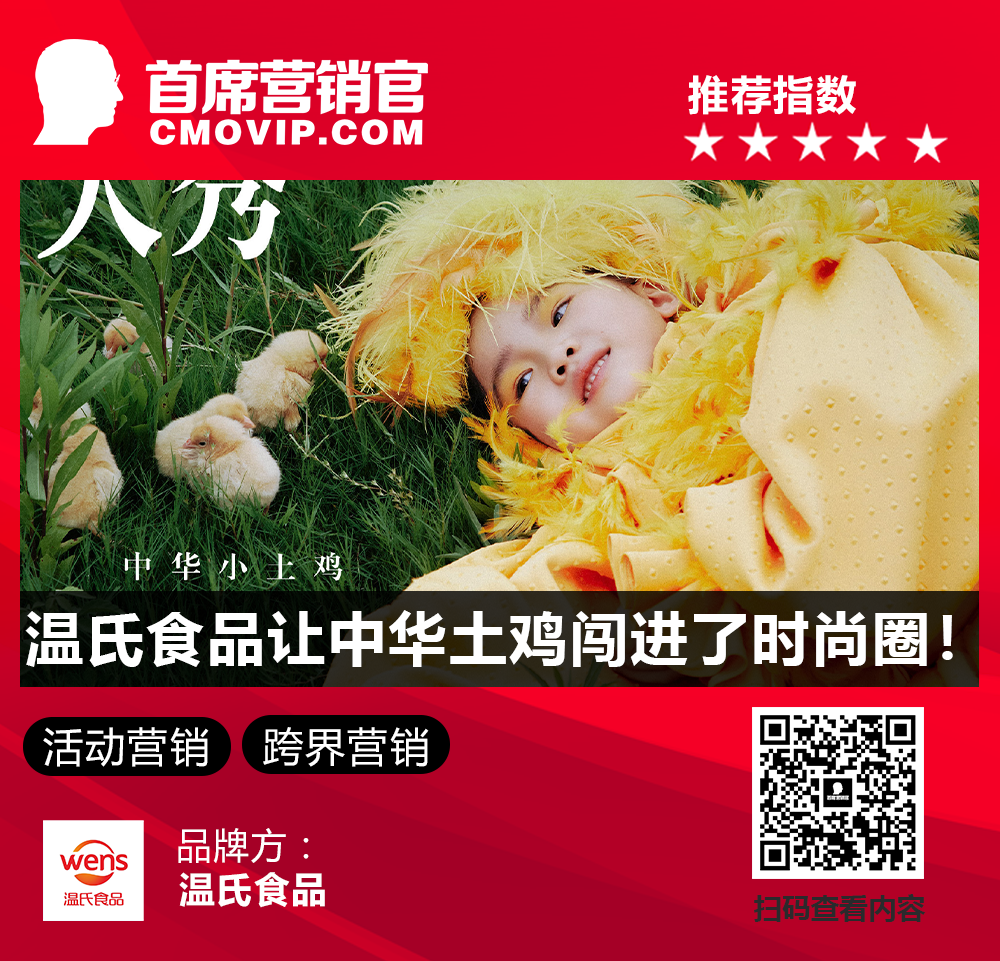 点评:温氏食品打破常规,用跨界时尚领域的创新呈现方式,将保护和振兴中华土鸡文化作为重要使命,让消费者意识到了土鸡背后的文化价值。