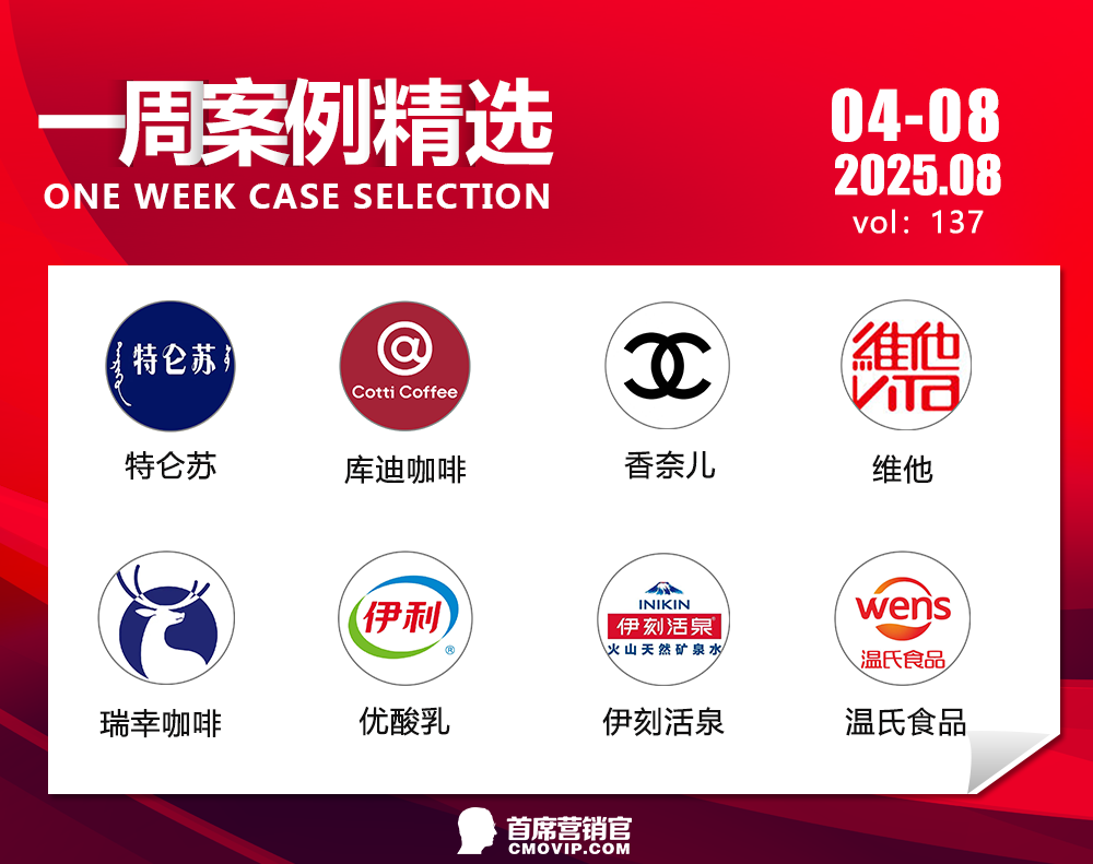这里有最热门的案例、最新鲜的创意!收录2000+品牌主及服务机构一手营销资讯,精选每周最具关注价值品牌案例。洞察未来营销趋势,尽在数字营销智库平台“首席营销官”官网企划——「一周案例精选」!