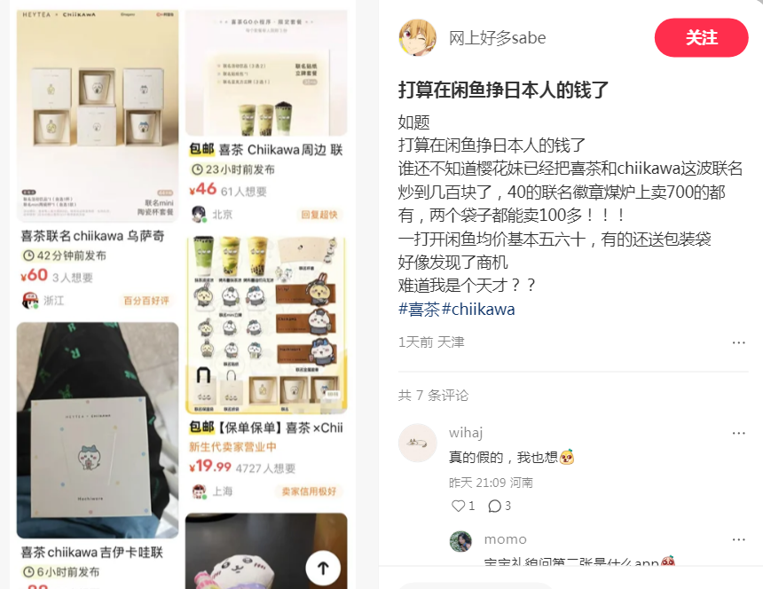 在吉伊卡哇联名中,黄牛不仅造成了食物浪费,更抢占了真正粉丝的购买机会,损害了IP的长期价值。