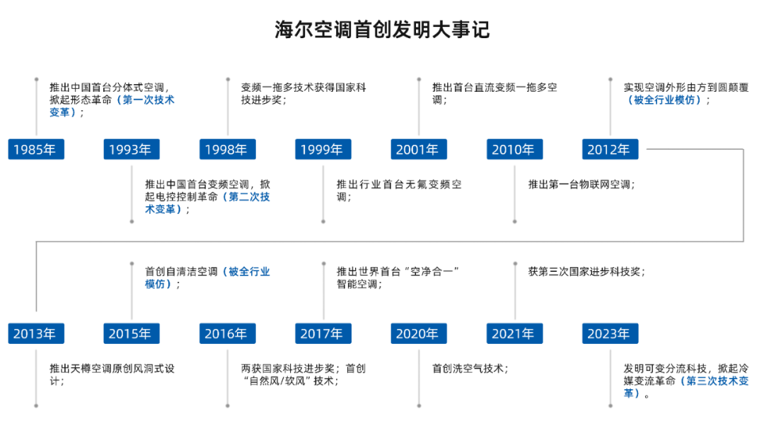 海尔空调的成长史几乎是中国空调技术的进化史。成立40年来,它推出无数引发跟风的首创技术,三次发起并主导行业技术革命,每次突破都让行业进入“海尔时间”——一个由它定义规则、设定节奏的纪元。
