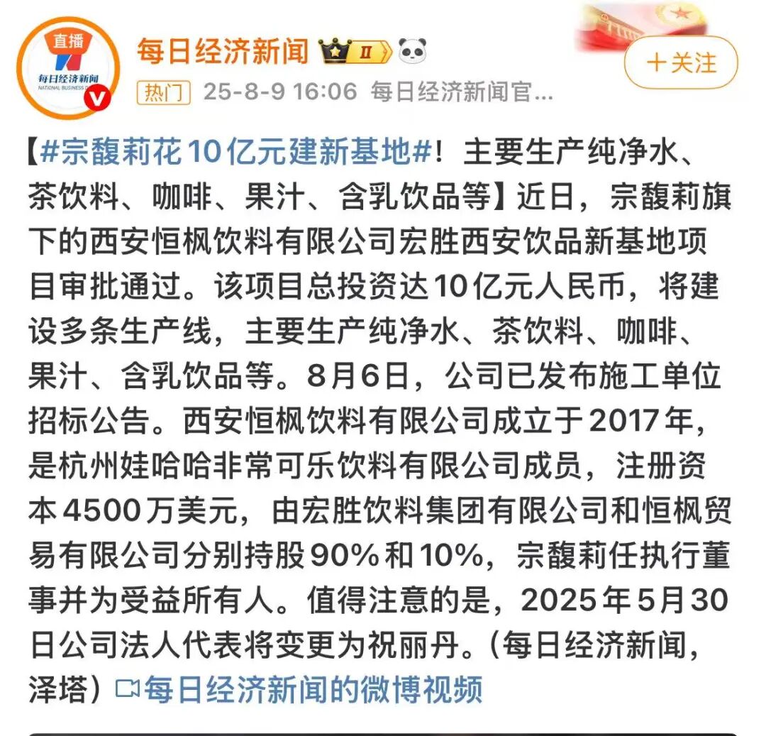 就在前两日,才有媒体报道,宏胜饮料集团投资10亿元在西安建设新基地。
