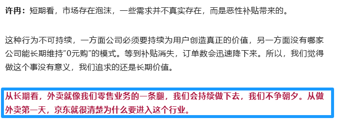 从做外卖第一天,京东就很清楚为什么要进入这个行业。”