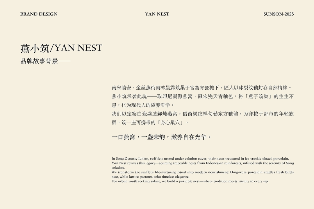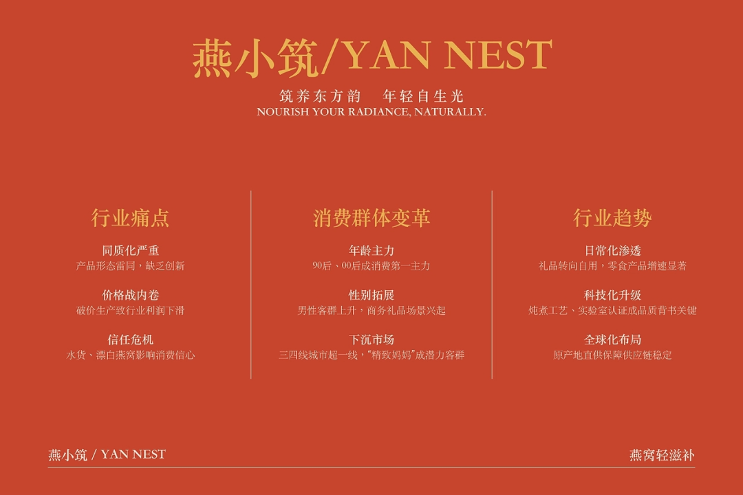 品牌以定窑白瓷盛装鲜炖燕窝,借窗棂纹样勾勒东方雅韵,为穿梭于都市的年轻族群,筑一座可携带的「身心巢穴」。