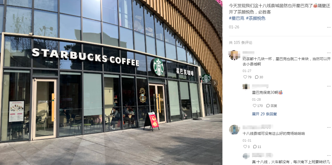 这一点十八线城市的消费者感知会很强烈,最近几年,什么蜜雪冰城、霸王茶姬、喜茶等店全部挤向了县城,因为这里被誉为尚未完全开垦的掘金地。