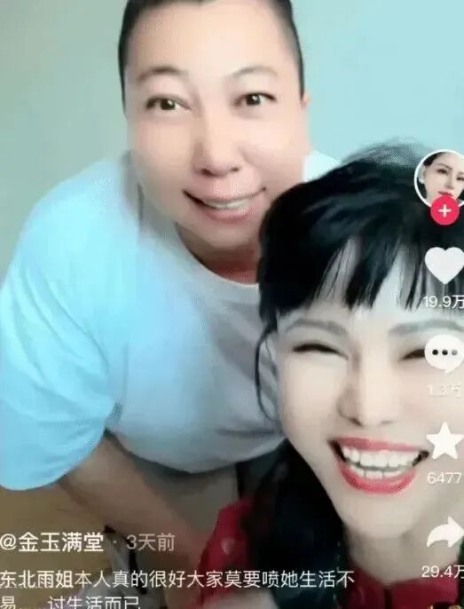 与热搜一起的还有博主“金玉满堂”发布的与东北雨姐的合拍视频,视频上配文恳求到“东北雨姐本人真的很好大家莫要喷她,生活不易,讨生活而已”。