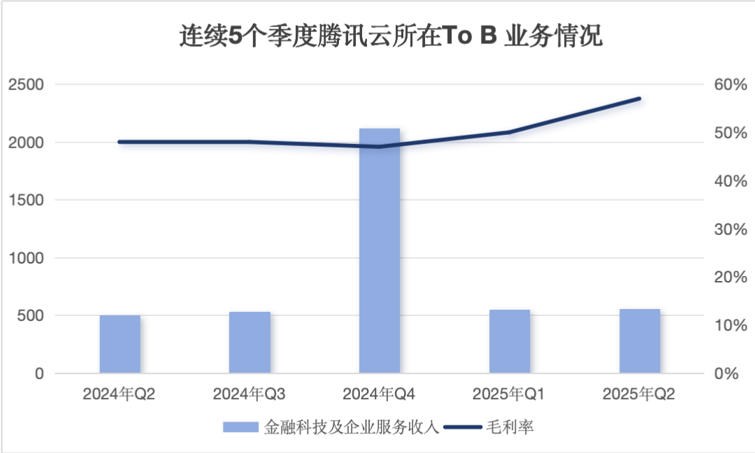 腾讯云所在的金融科技及企业服务,除去季节性因素,几个季度内都保持着稳定的营收和50%左右的毛利率。特别是企业服务收入,近几个季度增速有所加快,主要受益于企业客户对AI相关服务的需求增加,包括GPU租赁和API Token使用。同时,腾讯云出海的步伐也在加快,凭借云、数据库、AI等核心产品能力,与当地基础设施和运营服务相叠加,开拓海外本土市场和帮助中国企业出海。