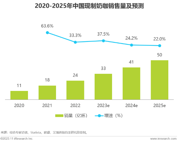 根据行业分析,B端乳制品市场的总规模已扩展至千亿级别,成为乳制品行业中不可忽视的重要组成部分。以咖啡市场为例,各大连锁品牌如星巴克、瑞幸咖啡等门店数量不断增加,对鲜奶、奶油、芝士等乳制品的需求量巨大,艾瑞咨询发布的白皮书显示,2023年中国现制奶咖销量预计为33亿杯,增速高达37.5%,并预测到2025年销量将达到50亿杯。