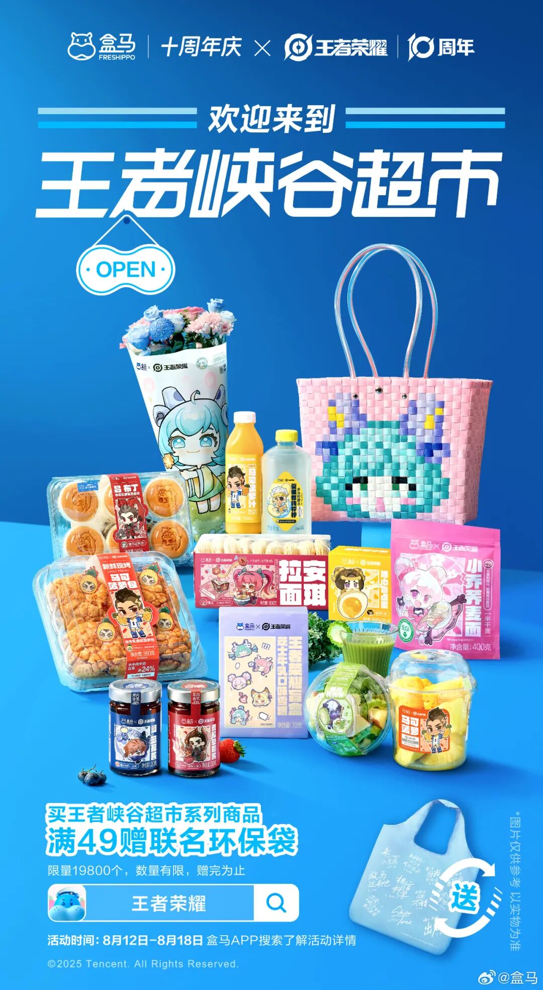 今年盒马与王者荣耀皆迎来意义非凡的十周年。两者以 “鲜美生活节” 为契机,携手开启这场盛大联动。