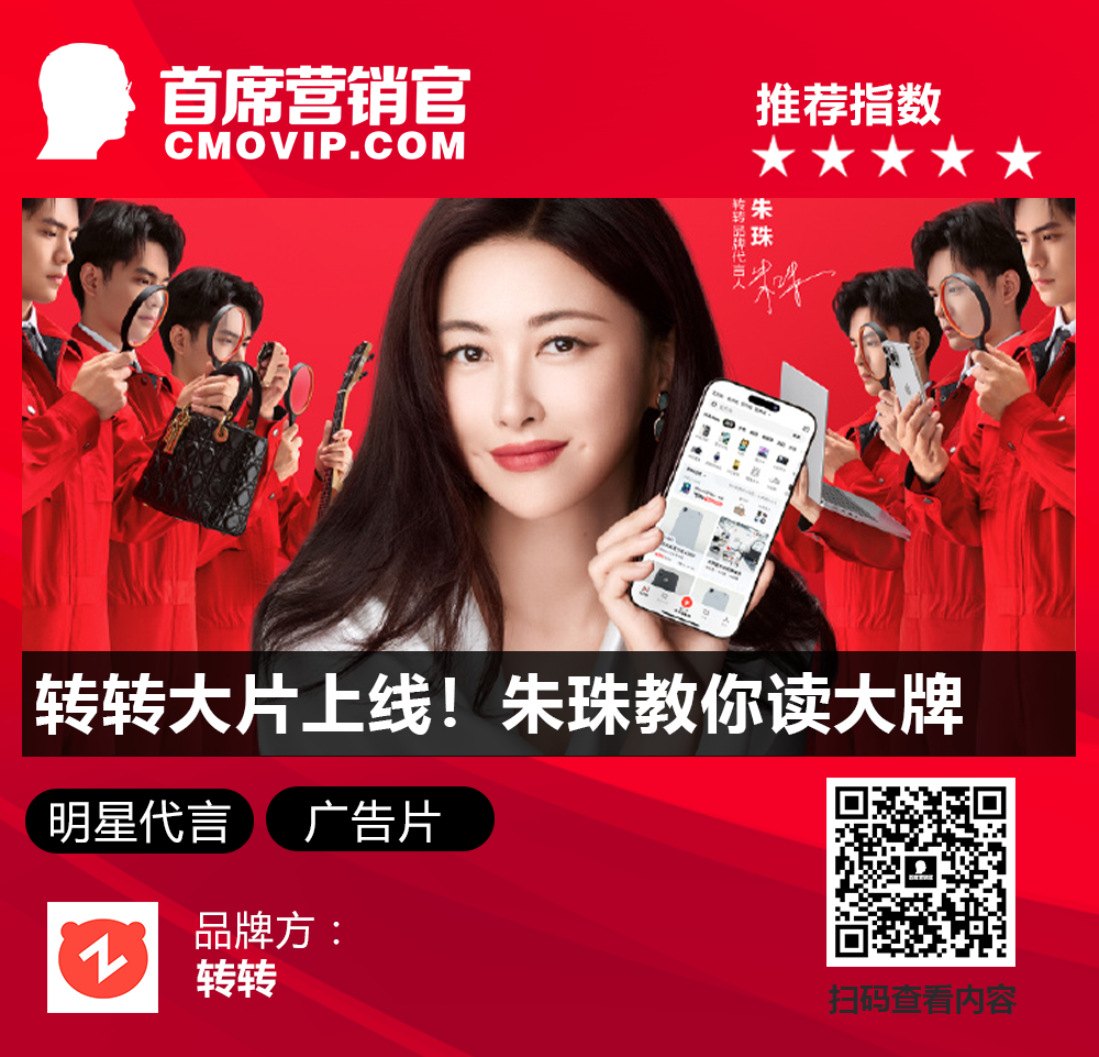 点评:朱珠自身兼具的高级感与亲和力,不仅为转转赋予了可信赖的品牌形象,更助力平台打破二手交易领域 “平价但不够高端” 的刻板印象,强化了 “高端可靠” 的品牌认知。