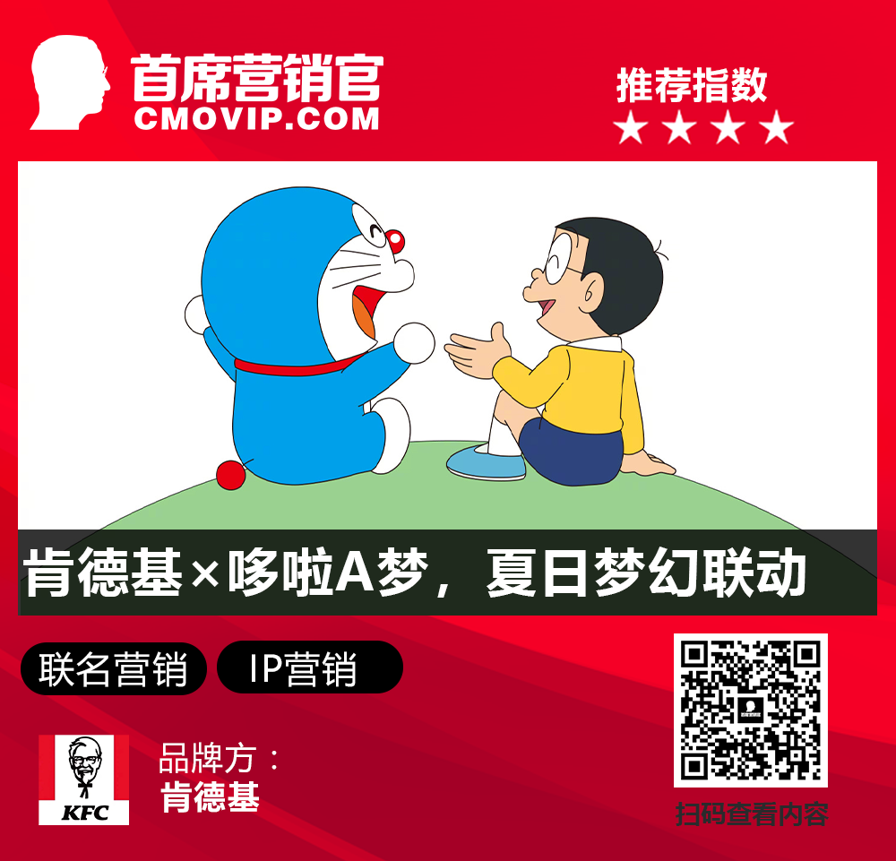 点评:通过与哆啦 A 梦的成功联名,肯德基不仅提升了产品销量,更极大提升了品牌在消费者心中的亲和力。