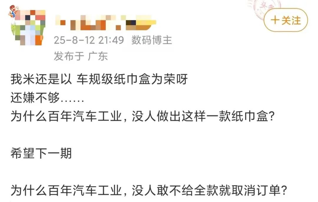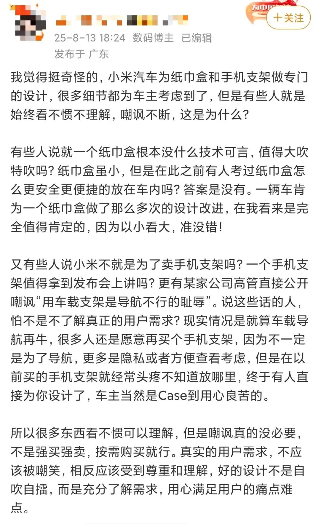 也有人吐槽 “车机系统还没吃透,先把纸巾盒玩出花了”,觉得这是“舍本逐末”,还不如把精力放在优化续航、提升安全性上。
