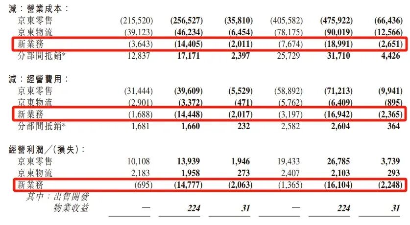 京东在财报中就解释到:主要是对新业务的战略投入增加导致。