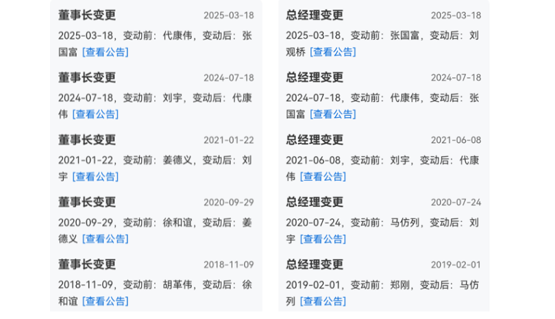 自北汽蓝谷2019年借壳上市至今,过去不到7年时间,董事长换了6任,总经理换了7任;其中,代康伟任期不到一年,最短的甚至只有4个月。这种频繁变动带来许多问题。