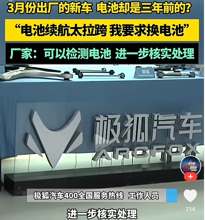 身陷亏损之外,极狐汽车还陷入了品质争议。据河南广播电视台报道,近期有极狐车主反映其购买的2025年3月出厂的极狐新车,竟然搭载着2022年9月生产的电池;更令他无法接受的是,这款官方宣传续航688公里的纯电SUV,实际仅能行驶200多公里就需要充电。此外,也有其他极狐车主反映了类似问题。
