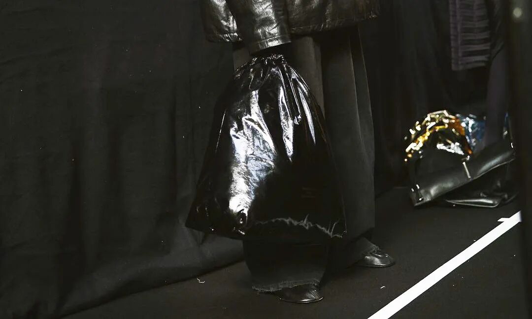 后来又推出过全黑小牛皮版的“垃圾袋包”,一度让人怀疑:设计师是不是每天都在超市找灵感?