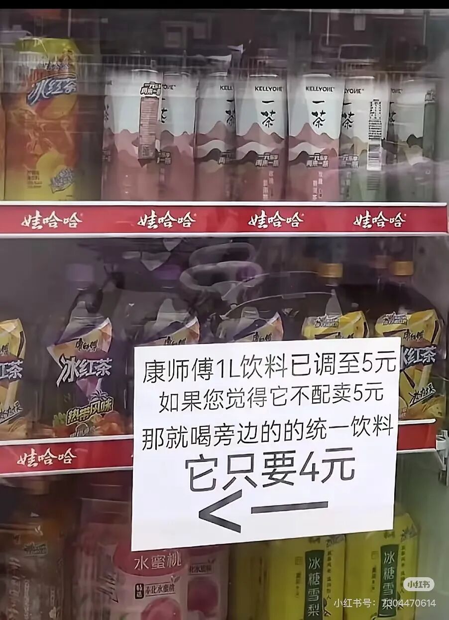 并且,半年内,康师傅经销商数量锐减3409家,直营零售商撤退1499家。一些卖不动的便利店老板,更是直接贴出“统一冰红茶仅售4元”的嘲讽标语。