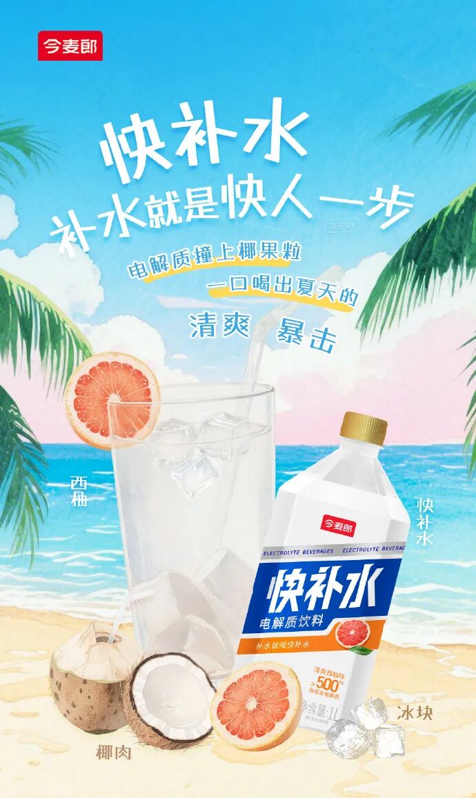 而在电解质水赛道上,今麦郎推出的“快补水”同样主打极致性价比,1L装只要4元,比东鹏特饮推出的补水啦1L装便宜整整2元。